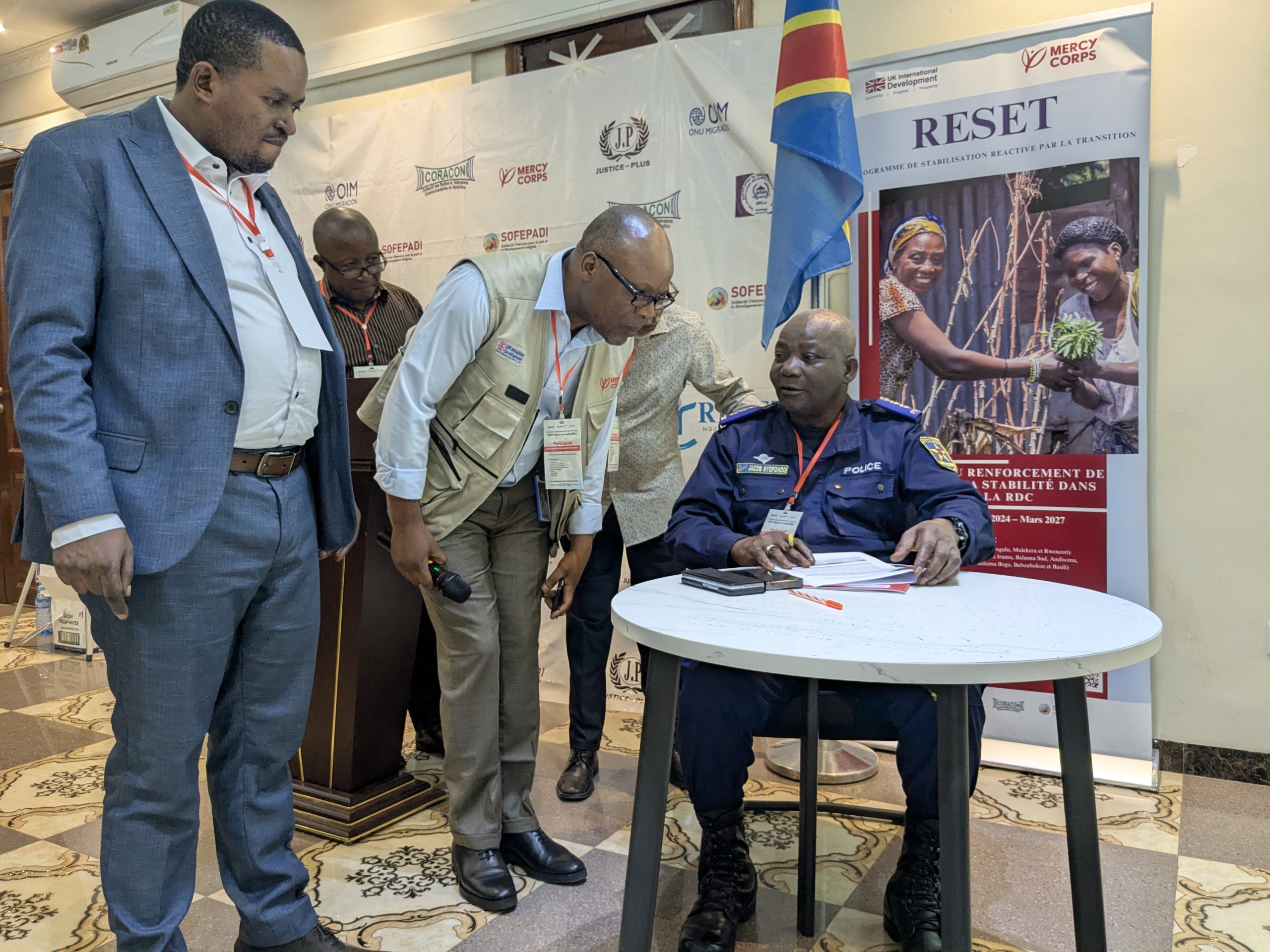 A notre que cette rencontre s’inscrivait dans le cadre de co-construction d’actions concrètes autour des enjeux de sécurité, justice, gouvernance locale et foncière, gestion des ressources naturelles et cohésion sociale. C’est Mercy Corps qui tient le lead du programme RESET implémenté avec Sofepadi, Coracon, OIM, Justice Plus, APC, qui était aux commandes.
