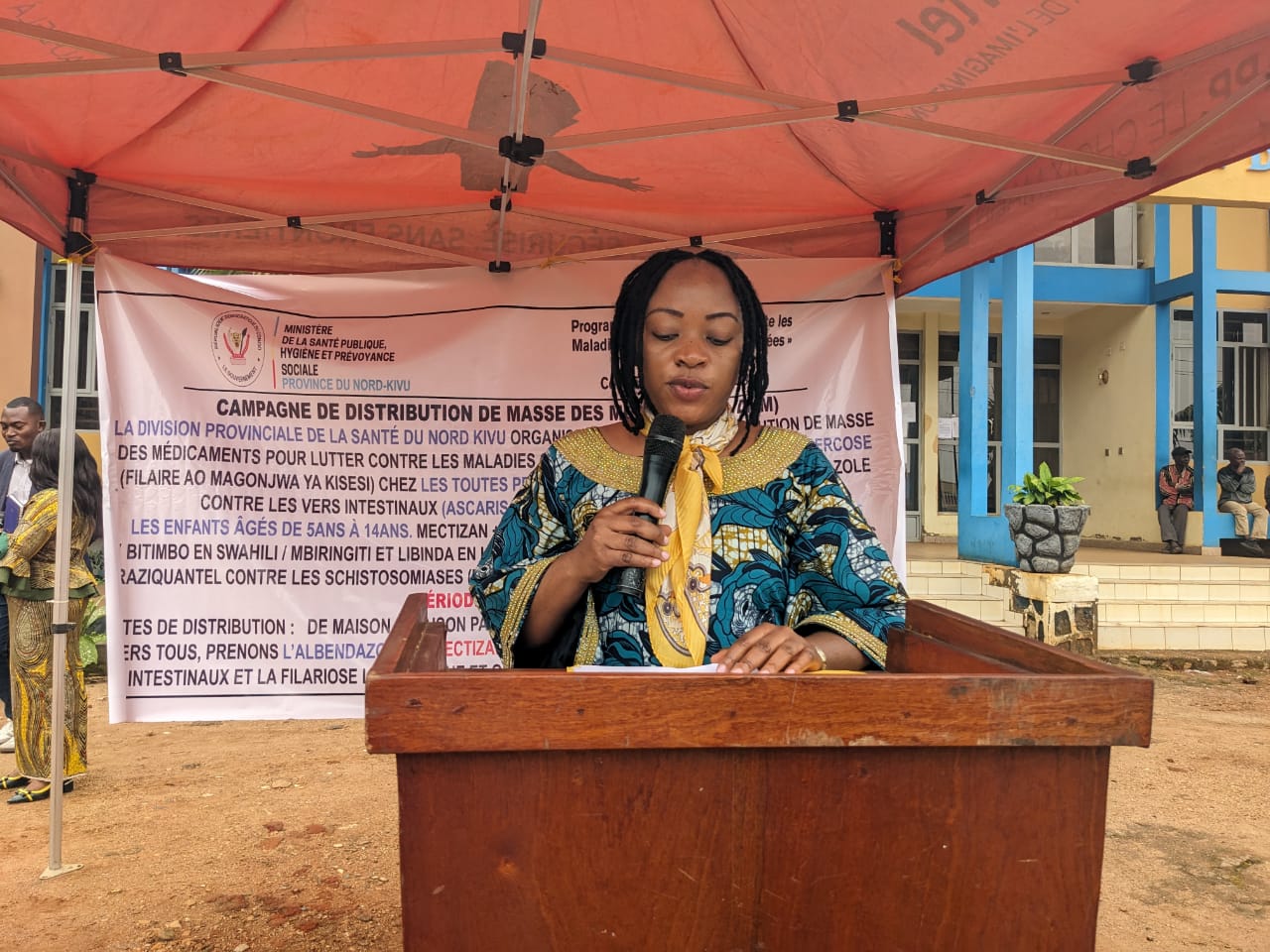 Le lancement officiel a été présidé par Madame Prisca Kamala, conseillère principale du gouverneur de province en charge de la santé. Dans son allocution, elle a salué l’engagement du gouvernement provincial du Nord-Kivu à accompagner cette campagne aux côtés des professionnels de santé et des partenaires techniques. Elle a précisé qu’après ces cérémonies, les relais communautaires procéderont à une distribution porte-à-porte des médicaments afin d’assurer une large couverture et protéger la population contre les maladies tropicales négligées.