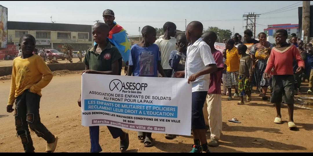 À Beni, dans la province du Nord-Kivu, l’Association des Enfants de Soldats au Front pour la Paix (ASESOFP) a adressé, le 27 novembre 2025, un mémorandum au gouverneur de province afin d’attirer son attention sur la situation critique des enfants et jeunes dépendants des Forces de défense et de sécurité. Cette démarche fait suite à une marche pacifique organisée en novembre dernier par ces enfants et jeunes, laquelle a été étouffée sans suite favorable, obligeant l’association à recourir à une interpellation formelle des autorités provinciales.